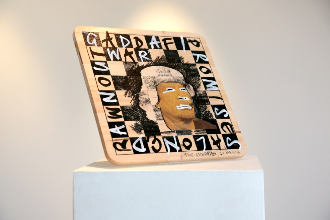 Collage responding to the day’s news about impending war in Libya, made as part of sequential group exhibition ‘Relay’ commissioned by ‘a space’ arts and Seth Kriebel as part of Rules and Regs.